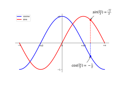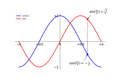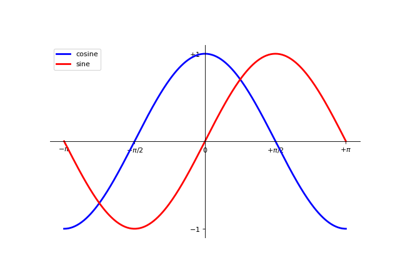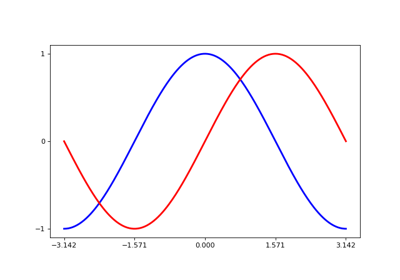 Current ticks are not ideal because they do not show the interesting values (\pm \pi,:math:pm pi/2) for sine and cosine. We’ll change them such that they show only these values.