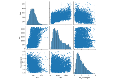 Pandas comes with some plotting tools (pandas.plotting, using matplotlib behind the scene) to display statistics of the data in dataframes: